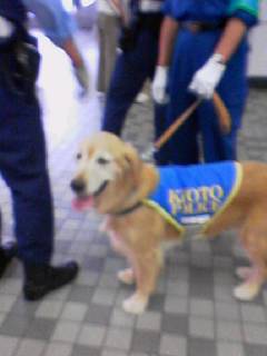 昨朝、東京行きの新幹線に乗るため 京都駅に着きましたら、お仕事中の警察犬に 遭遇しました。爆弾探知犬のようです。