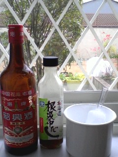ところで、先日 長い間 瓶の底に 少しだけ残っていました 紹興酒を、瓶を空けるために 漬け汁につかってみました。
