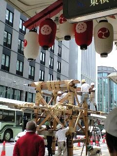 17日の巡行に向けまして、今日から 山鉾立ての作業が 各町始まりました。