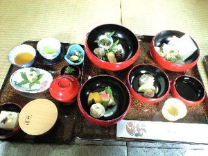 お精進とはいえ、品数も多く 見た目の美しさ 味のバラエティー、そして 食べ応えもあります。 胡麻豆腐や 生麩田楽、梅の天ぷらなどは 私の大好物です(*^_^*)。