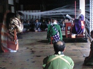 毎年、「鬼」ならぬ 「大蜘蛛」 退治の 節分会追儺式が行われます。