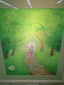 これまでは、水彩と色鉛筆だけで描くことが多かったのですが、今回は 木漏れ日や 光の感じを出しますために、アクリルの白を使ってみました。