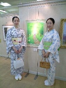 6月の全国大会の時に、http://yumih8.cocolog-nifty.com/1000winds/2009/06/in-72c6.html モデルとなってくれはりました 祇園の芸姑さんが、前回の `高島田にお引きずり`ではなく、涼しげな浴衣姿で 立ち寄ってくださいました。