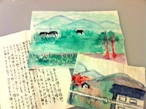 (略)今は昔習ってをりました絵、ベッドに腰をかけまして片眼しか見えないながら窓外の景色を描いて楽しみに致してをります