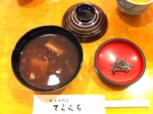道がすいていまして、予定よりずいぶん早く着きましたので、門前の茶店で一休み。永平寺名物の、胡麻豆腐入りおぜんざいをいただき、ほっこりしました。