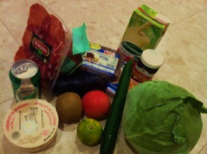 地元・京都のトマト、茄子、キュウリ、沖縄のオクラ、阿蘇山の生産者から直接取り寄せたキャベツ、ニュージーランドのキウイと蜂蜜、ドイツの黒パン、ベルギーのオーガニック豆乳、昨年の大豆で作った島根の生味噌、フランスのチーズ、イタリアの生ハムとクラッカー・・・・・・