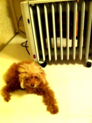 この頃は、私たちが 夕食をいただいている間は、ダイニングとキッチンの間の出入り口に、このように じっとお座りをしまして、おとなしくしています。