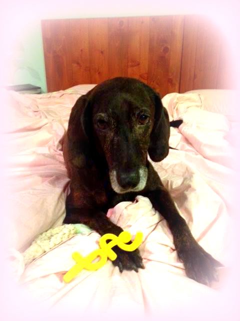 べッドにおもちゃを集めて、ご満悦の福ちゃんです(^_^)