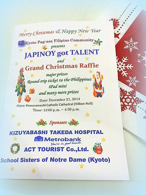 今年も、カトリック教会フィリピンソサエティー(Kyoto Pag-asa Filipino Community)のクリスマスパーティーに、お招きいただきました。