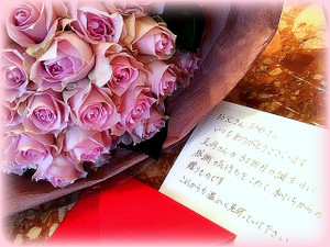 朝一番に、長男夫婦の名前で、薔薇の花束が届きました。