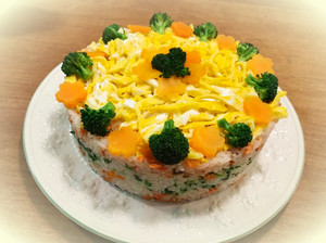 4才の孫娘は、キュートなエプロン姿で、一生懸命、雛祭り寿司作りのお手伝いをしてくれました♡