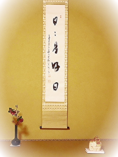 図らずも、文字と明るい装丁がお誕生日らしいと選びました掛け軸が、管長時代の同人のものと、掛けました後に気付きました。