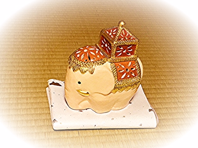 可愛らしい像の香炉は、桂窯の檜垣青子さんのお作です。