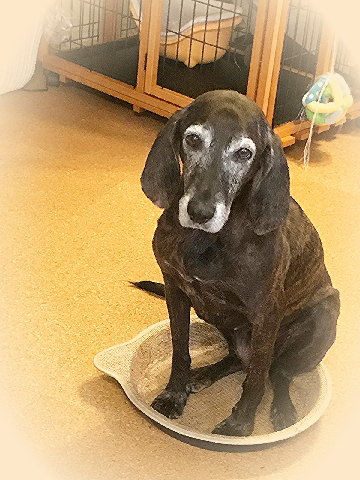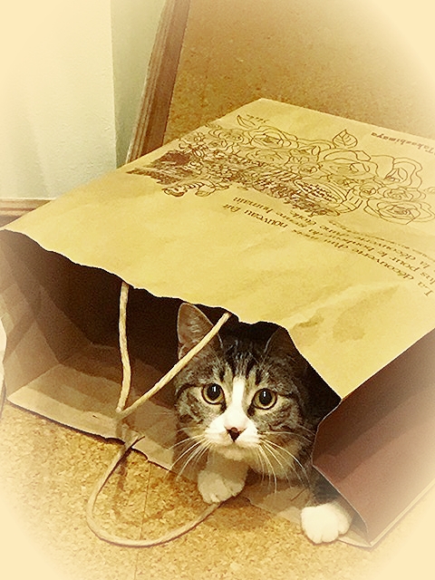 そして、マナちゃんに、お昼寝用のベッドを明け渡し、マナちゃんの爪とぎトレーに座る、心優しい 福ちゃんです♪