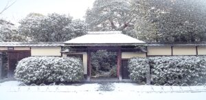 画像は、雪景色の、裏千家・兜門です。