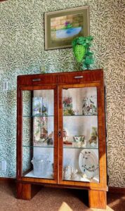 冒頭の写真は、花鳥モチーフのコレクションを収めましたアンティークシェルフです。